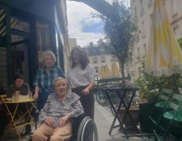 Autour d’une balle sensorielle, les résidents renouvellent le contact avec leurs corps, geste après geste.