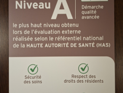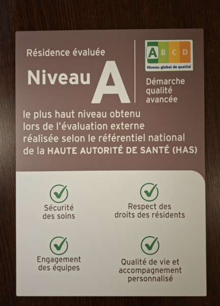 La résidence Tiers Temps a reçu ce matin le panneau qui rappelle que la résidence a obtenu la note de 3.95 sur 4 lors de son évaluation par la Haute Autorité de Santé.