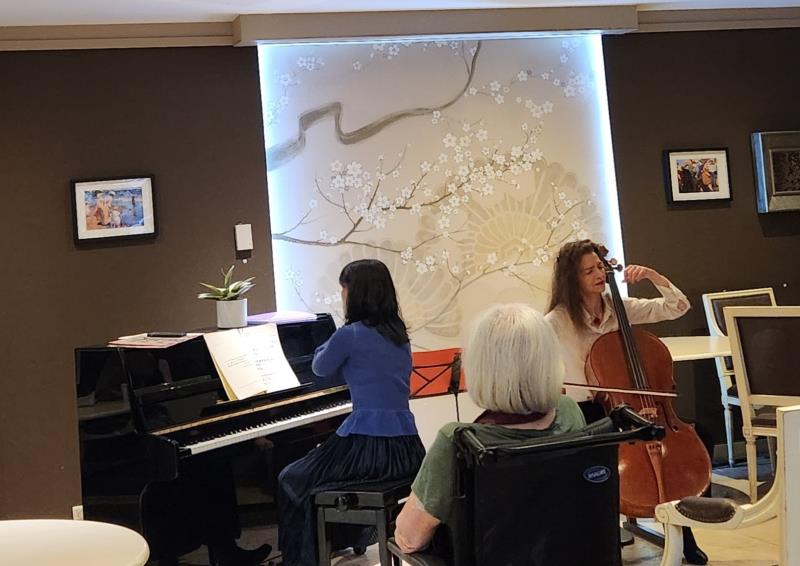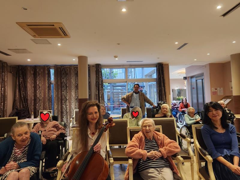 Résidence Tiers Temps > Actualités > L'accord parfait L'accord parfait Publiée le 16/11/2025 "Ça rend heureux" furent les paroles d'une de nos résidentes à la fin de ce merveilleux concert piano et violoncelle !