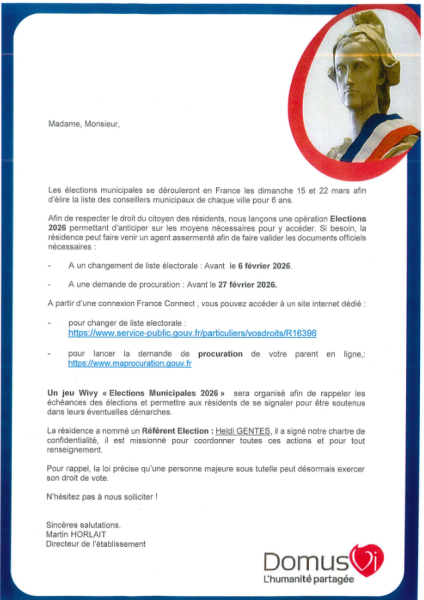 Le droit de vote est essentiel, c'est pourquoi, lors de chaque élections, nous mettons tout en œuvre afin que chaque résident puisse participer aux scrutins à venir.
