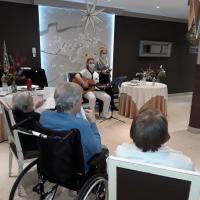 Publiée le 29/12/2020Jeudi 24 décembre, à l'occasion du Réveillon, les résidents ont pu participer à une chorale de Noël. Iris, notre psychomotricienne, accompagnait la voix de vos proches au son de sa guitare. Les soignants se sont joints à eux le temps de quelques chansons pour danser et chanter ! L'ambiance chaleureuse a m [...] Lire la suite