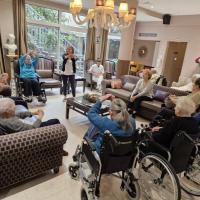 Publiée le 16/05/2025Mercredi, une séance de yoga douce et adaptée a été proposée aux résidents, visant à améliorer leur bien-être physique et mental. Le yoga, pratiqué dans un cadre calme et serein, a été conçu pour répondre aux besoins spécifiques des personnes âgées, tout en re [...] Lire la suite