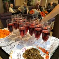 Publiée le 04/11/2019Le déjeuner, orange et noir de rigueur, s'est décliné en une salade de carottes râpées et betteraves au cumin, d'un boeuf Bourguignon accompagné d'une purée de potiron et d'une tarte aux myrtilles. Après une séance collective de gymnastique avec Didier notre kinésithérapeute, [...] Lire la suite