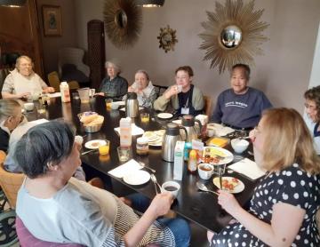 Un moment tout simple entre une résidente et Emma, psychomotricienne, qui lui pose une touche de couleur.