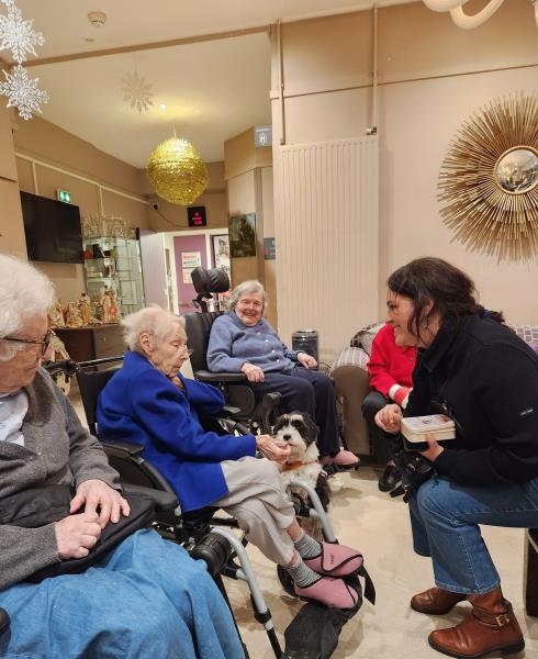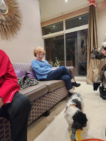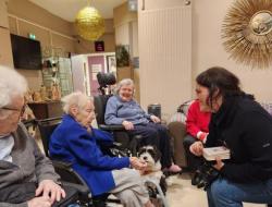 Résidence Tiers Temps > Actualités > Visite du petit chien Satie Visite du petit chien Satie Publiée le 11/01/2026 La visite du petit chien espiègle Satie, accompagné de sa maîtresse Gaëlle, un moment de partage toujours apprécié